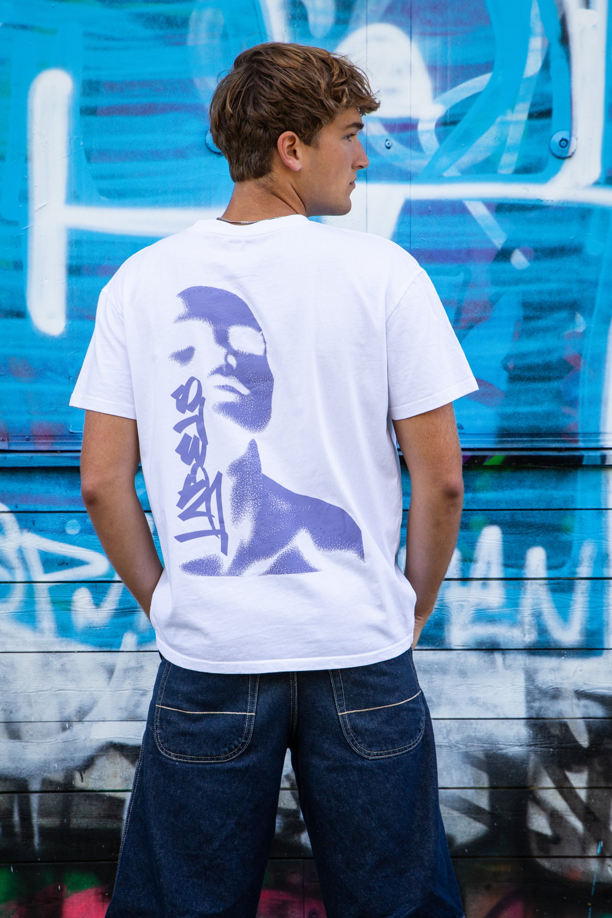 The Face Off Tee is designed to make a statement. With its clean oversized fit and minimal front, all attention is drawn to the bold purple face graphic and Labels branding on the back.